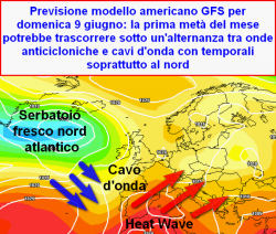 Questo obbiettivo verrà raggiunto solo in parte, con la conseguenza più o meno diretta di avere un tipo di tempo a metà strada tra il sole e l’instabilità. Le condizioni maggiormente stabili e calde, saranno più avvertibili al centro ed al sud. (due isole maggiori comprese) In un certo senso la prima metà di giugno potrebbe trascorrere sotto i canoni più classici delle estati anni 70′, 80′, quando l’anticiclone africano propriamente detto poteva fare la sua comparsa solo a luglio ed agosto, ed il mese di giugno risultava instabile alla pari del periodo dopo Ferragosto.