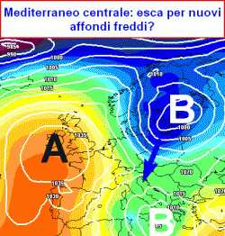 Depressione mediterranea potrebbe fare da esca per nuove retrogressioni fredde.