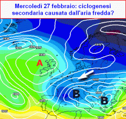 Potrebbe così nascere tra mercoledì 27 e giovedì 28 persino una depressione secondaria sul settentrione, pronta poi a muoversi il centro-sud, trascinandosi dietro un carico ulteriore di precipitazioni e di freddo, con la neve pronta a baciare le quote collinari.