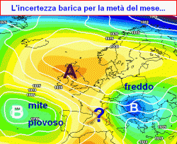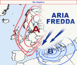 Anticiclone in parziale ritiro verso la Scandinavia e azione sinergica est-ovest sul Mediterraneo con risvolti dapprima un po' freddini, poi nuovamente piovosi e più miti. In mezzo qualche nevicata a bassa quota, segnatamente al nord.