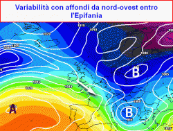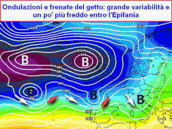 Secondo noi entro l’Epifania il tempo tornerà ad una dinamicità invernale, caratterizzata da giorni perturbati con neve a quote anche basse, alternati a schiarite assolate e fasi ventose, così come ci suggerisce anche la carta barica che postiamo sopra a sinistra, ove si nota la classica alternanza di onde cicloniche e di onde anticicloniche.