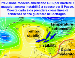 Sintesi previsionale da mercoledì primo maggio a giovedì 9 maggio: