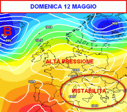 La situazione sinottica prevista per la giornata di domenica 12 maggio non fa che confermare ciò che abbiamo detto poco sopra.