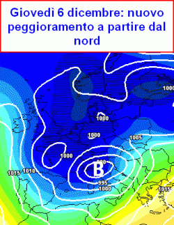 da martedì 4 a mercoledì 5 dicembre: generale variabilità sull’Italia con qualche fenomeno in Adriatico e sul basso Tirreno, ventilato e fresco, specie al nord e nottetempo con gelate nelle zone non esposte al vento.