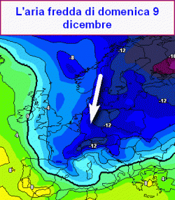 Dietro la depressione verrebbe anche a spezzarsi il trenino delle correnti da nord-ovest, con chiusura della porta atlantica e afflusso di aria fredda da nord nel cuore del Mediterraneo, con risvolti gelidi tra il 9 e l’11 dicembre.