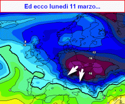 da lunedì 11 marzo: arrivo dell’aria fredda da est, risucchiata dalla depressione in movimento verso il meridione. Esito molto incerto…
