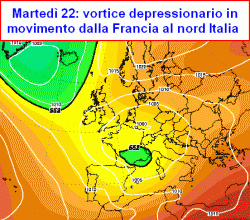 -tra lunedì 21 e mercoledì 23: fase di maltempo abbastanza probabile, specie al centro-nord, con piogge e temporali, unitamente a temperature fresche.