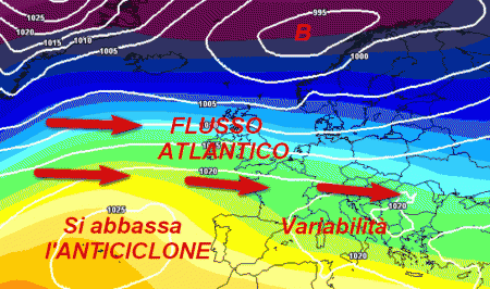 Le Isole Britanniche e il nord della Francia verranno liberate; non ancora invece la Penisola Iberica e il Bacino occidentale del Mediterraneo che seguiteranno ad avere una pressione più alta del normale.