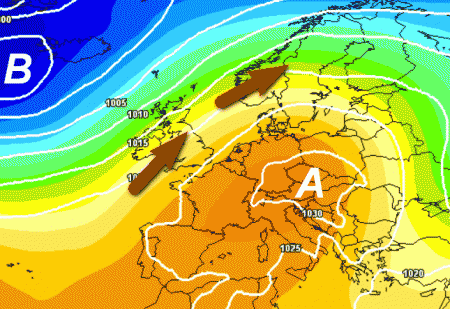 Eliminata questa ostacolante presenza, le perturbazioni torneranno a scorrere sull’Europa centrale e sull’Italia con il loro carico di pioggia, ma in un contesto piuttosto mite.