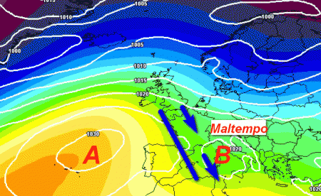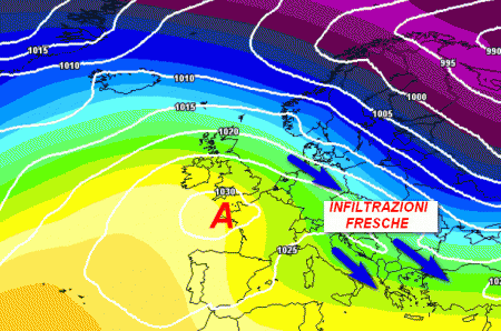 A seguire, assisteremo probabilmente ad una nuova migrazione dell’alta pressione in Atlantico che darà modo all’aria fredda di entrare direttamente sulla nostra Penisola, producendo freddo e maltempo.