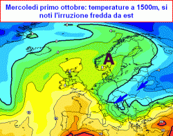 In seguito, cioè dai primi d’ottobre, l’anticiclone mostrerebbe però segni di insofferenza, andando a cercar fortuna in terra scandinava e trovando invece "pane per i suoi denti": l’aria fredda andrebbe ad infilarlo con la classica manovra di aggiramento, che farebbero perno anche sulla caratteristica stessa dell’anticiclone nella sua parte orientale, cioè il movimento orario, dunque retrogrado, per veicolare le sue masse d’aria verso le nostre regioni.