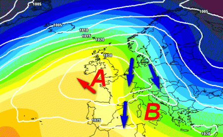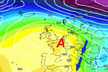 L’alta pressione si sposterà un po’ verso ovest, ma la situazione non cambierà molto; ancora niente perturbazioni atlantiche o incursioni fredde dalla Valle del Rodano. Solo aria fredda che potrebbe intervenire con maggiore decisione sull’Italia, creando lo spunto per fenomeni sulle "solite" aree, ovvero il medio-basso Adriatico e il meridione. Altrove le temperature subiranno un calo, ma non avremo nessun tipo di fenomeno.