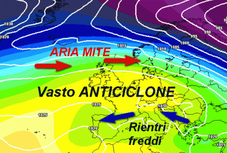 L’abbraccio stabilizzante potrebbe sfiorare al massimo le regioni settentrionali. Il resto del Paese resterà sotto il tiro di correnti fredde orientali che oltre a determinare un clima frizzante, potrebbero determinare annuvolamenti e precipitazioni anche nevose a quote basse, specie sull’Appennino centro-meridionale.