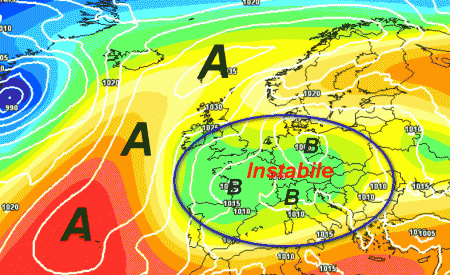 Di rimando, gran parte dell’Europa centrale compresa l’Italia sarà sottomessa al giogo dell’instabilità, tra le spire di una complessa depressione con diversi minimi. In altre parole, il tempo non potrà essere buono segnatamente al centro-nord che sarà meta di rovesci, temporali e temperature non all’altezza del periodo in questione.