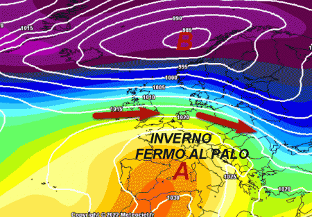 Esaurita la breve ondata di freddo, l’alta pressione piomberà come un falco sull’Italia, mettendo nuovamente il bavaglio ad un inverno mai completamente decollato a scala nazionale. Torneranno le nebbie, le nubi basse, l’inquinamento, con completa assenza di fenomeni piovosi e nevosi.