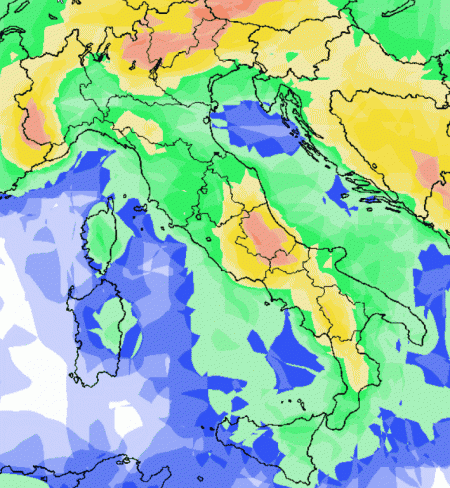 Probabilità minore di pioggia sulle Isole e lungo le coste del centro e del sud, più elevata invece nelle aree interne del centro e al nord. Insomma, poca stabilità sul nostro Paese.