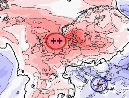Il primo passo sarà quello di riuscire ad indebolire il vasto e robusto anticiclone che si sarà formato in questi giorni tra centro Europa ed Italia. Il compito sembrerebbe affidato ad un rientro di correnti orientali piuttosto fredde ma secche previsto dal modello americano per martedì 2 marzo, come si può vedere da questa mappa relativa all’anomalia termica prevista a 1500m sull’Europa, dalla quale si evince il rientro freddo orientale sull’Italia che spingerebbe i valori leggermente sotto la media del periodo, notate invece ancora la massa d’aria mite e stabile tra centro e nord del Continente: