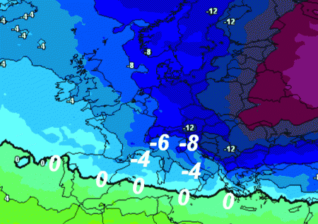 Sulle Isole e il basso Tirreno avremo isoterme a 1500 metri comprese tra 0 e -2°; al centro tra -2 e -4°, al nord addirittura tra -4 e -8°. La probabilità che questa situazione diventi reale è attorno al 40-45%, quindi ancora MEDIO-BASSA.