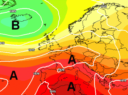 Ecco l’alta pressione delle Azzorre in combutta con quella africana sul Mediterraneo. Si creerà una figura stabilizzante molto solida in grado di mettere sotto bel tempo e caldo tutta l’Italia, anche le regioni settentrionali.