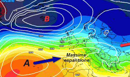 La parte forte dell’alta pressione resterà rintanata molto ad ovest, in prossimità dell’Oceano. Il suo braccio stabilizzante orientale sarà debole, anche se in grado di garantire un tempo più stabile (anche se non completamente) sul finire della settimana prossima, con un aumento delle temperature massime.