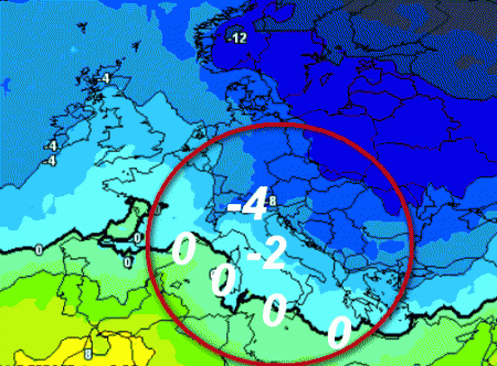 Veniamo infine al capitolo FREDDO: di seguito lo scenario un po’ più favorevole al freddo a 1500 metri che potrebbe potenzialmente realizzarsi nella giornata di martedi 7 dicembre,  tralasciando quelli più estremi e meno probabili.