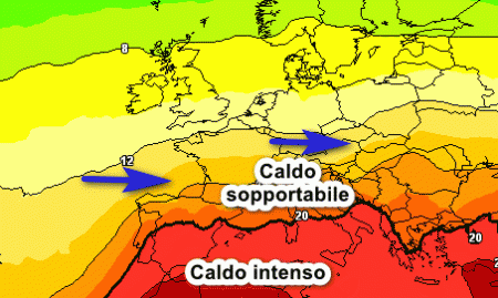 Si nota una flessione della bolla calda che dovrebbe consentire un caldo più sopportabile al nord e al centro. Nulla di cambiato invece per il sud e le Isole, dove il caldo seguiterà ad essere intenso.