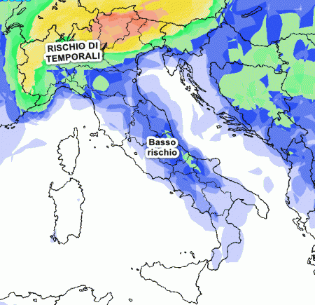 Su parte del nord aumenterà la tendenza temporalesca, specie su Alpi, Prealpi ed alte pianure. Qualche temporale di stagione non sarà escluso anche nelle aree interne del centro, per il resto nessun cambiamento.