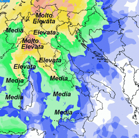 Si notano molte zone con una probabilità di pioggia elevata o media e solo pochissime aree con una probabilità di pioggia bassa. Ciò significa che l’alta pressione dovrebbe ormai essere lontana dalla nostra Penisola. Nei prossimi giorni seguiremo l’evoluzione passo passo in base alle nuove emissioni dei modelli.