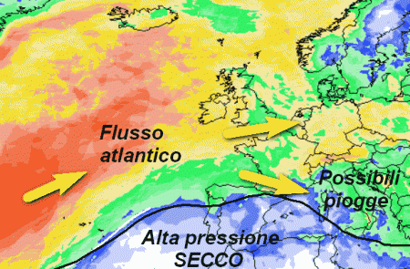 Il flusso atlantico verrà purtroppo distorto dalla solita anomalia pressoria in sede iberica, ma qualche precipitazione sull’Italia arriverà lo stesso, anche nei giorni seguenti.
