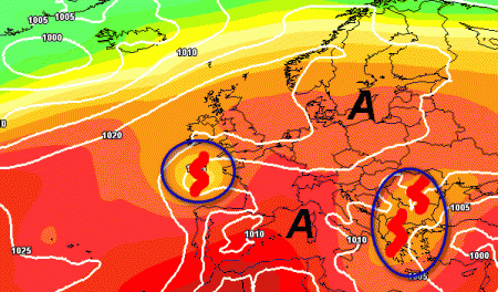 Osservate però la goccia fredda presente sul Golfo di Biscaglia; lentamente si avvicinerà all’Italia e potrebbe interessarci all’inizio della terza decade mensile. Fino al allora il tempo risulterà stabile e soleggiato sull’Italia a parte qualche temporale nelle zone interne durante il pomeriggio.