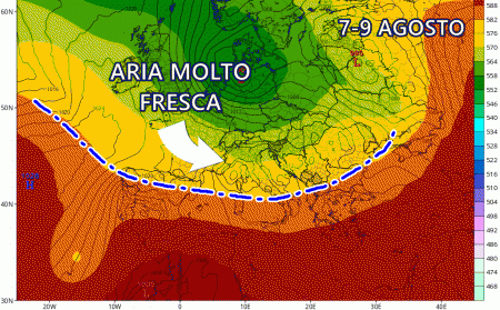 Sarà un duro colpo per l’Estate, non ci sono molti giri di parole: nel corso della prima settimana di Agosto l’Italia dovrà fare i conti con una irruzione fresca non di poco conto, la quale rischia di avere ripercussioni anche nei giorni successivi, insomma per quasi tutta la prima decade del mese.
