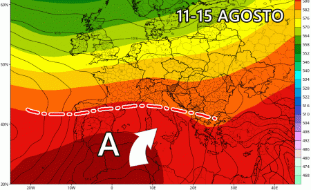 Dopo questa turbolenta prima decade di Agosto il tempo potrebbe ristabilirsi nel corso della seconda decade, quella solitamente più attesa per le vacanze di Ferragosto. Tra 11 e 14 Agosto si evince un rinforzo dell’anticiclone sull’Italia con conseguente aumento delle temperature.
