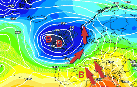 Lo scambio meridiano che dovrebbe costruirsi in Europa avrà le carte in regola per modificare la configurazione barica a scala europea ed atlantica.