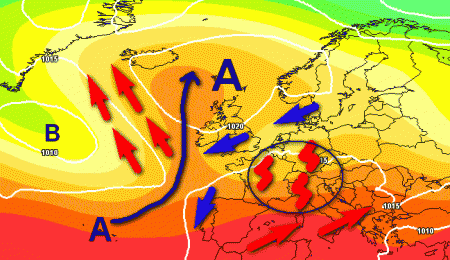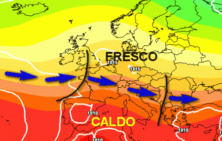 Si conferma una parziale migrazione dell'alta pressione delle Azzorre verso nord con la discesa di correnti fresche sull'Europa centrale e parte della nostra Penisola.