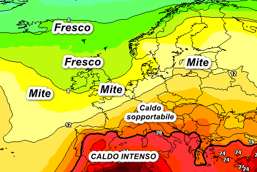 Notiamo un caldo nel complesso sopportabile, solo a tratti più intenso al nord e su gran parte delle regioni centrali. Il caldo intenso sarà invece di competenza delle Isole e del meridione, mentre oltralpe avremo un clima decisamente mite, fino a sfumare nel fresco sulle Isole Britanniche.