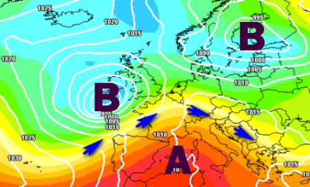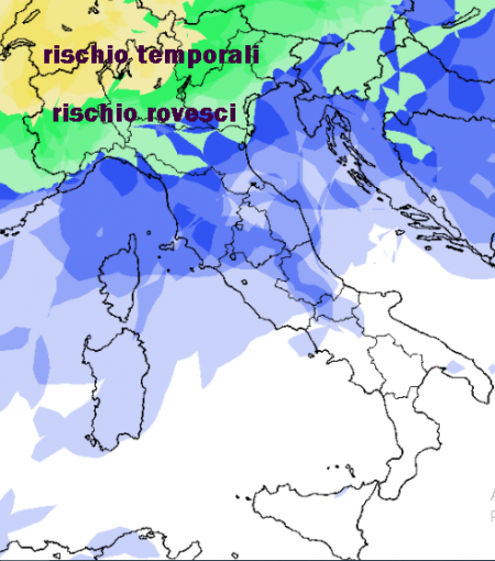 Ed ecco il passaggio temporalesco al nord previsto tra domenica 23 e lunedì, quando da ovest sfonderanno le correnti fresche di origine atlantica: