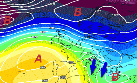 E’ palese la distensione zonale dell’alta pressione verso l’Italia. Tutto ciò determinerà condizioni maggiormente stabili da nord a sud, anche se accompagnate da temperature non elevate.