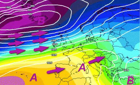 Cosa succederà successivamente? L’alta pressione atlantica, sospinta da un getto in rinforzo alle latitudini medio-alte, sembra intenzionata a distendersi sul Mediterraneo e l’Italia, marginalizzando sempre di più le ingerenze fredde settentrionali.