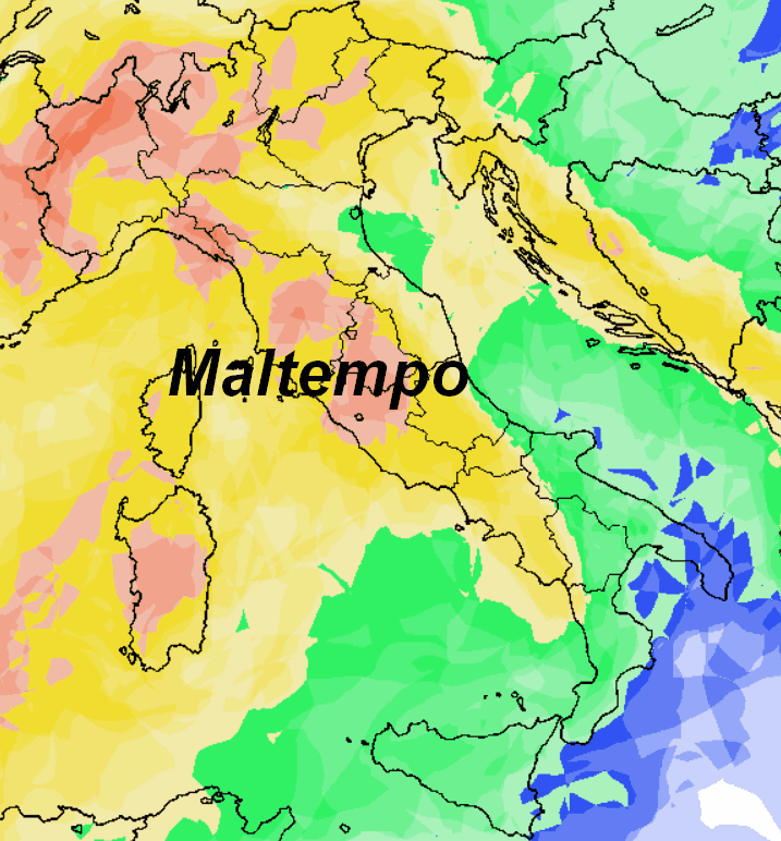 Ad eccezione del settore ionico dove la probabilità di pioggia si manterrà bassa, sul resto d’Italia la medesima probabilità sarà anche elevata dove vedete il colore tendente al rosso. Una situazione di maltempo che terrà sotto scacco molte regioni italiane, specie il centro e il nord. Il contesto termico non sarà freddo in quanto la corrente portante sarà sud-occidentale, di conseguenza abbastanza mite.