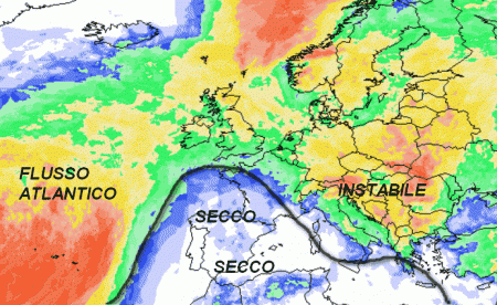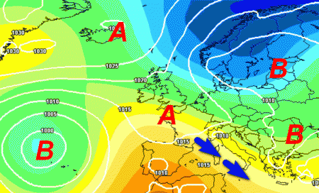 Notiamo una situazione "a sella" con due basse pressioni ai lati ed una zona di alta pressione al centro, in prossimità dell’Europa centro-occidentale. Con questa situazione, la nostra Penisola sarà ancora esposta a correnti da nord-ovest abbastanza fresche con tempo instabile su molte aree del nostro Paese.