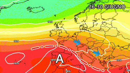 Secondo le ultimissime emissioni modellistiche l’alta pressione potrebbe indietreggiare verso la penisola iberica e il nord Africa nel corso degli ultimi 5 giorni di Giugno. Questo non significa che farà fresco o che ci sarà il maltempo, bensì che l’anticiclone sarà un po’ più debole sull’Italia.