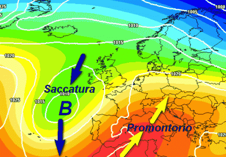 Ecco i due piatti della bilancia: quello in discesa sarà sul Vicino Atlantico e su gran parte dell’Europa occidentale dove si posizionerà il maltempo. Il piatto in salita sarà posizionato invece sulla verticale del Mediterraneo ed interesserà anche l’Italia, segnatamente le regioni centro-meridionali, dove avremo sole e caldo per il periodo. Il nord resterà un po’ al limite ed avrà qualche annuvolamento in più, raramente associato a precipitazioni.