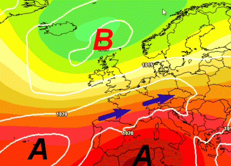 L’alta pressione delle Azzorre e quella africana tenteranno di interagire tra di loro (quando succede ciò per la nostra Penisola sono sempre dolori in estate in fatto di caldo). Tuttavia, sull’Europa centrale si manterrà attivo un flusso occidentale abbastanza energico che impedirà all’alta pressione di salire troppo di latitudine.