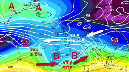 Sul vicino Atlantico non si formerà nessun blocco anticiclonico; questo sarà il vero deterrente che manterrà il freddo al di la dei nostri confini. L’alta pressione sarà situata troppo a nord per garantire la canalizzazione dell’aria fredda verso le basse latitudini e il Mediterraneo.