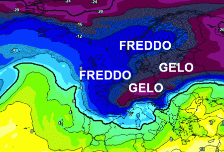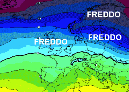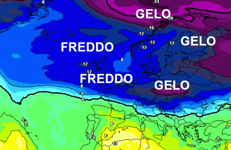 Se analizziamo le temperature che presumibilmente avremo oltralpe nel medesimo periodo, si nota che l’aria sarà davvero fredda, se non gelida: