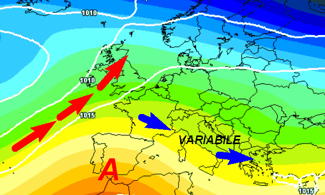 Si nota la nostra Penisola inserita in un corridoio di correnti relativamente più fresche da nord-ovest. Questo renderà variabile il tempo sull’Italia con qualche rovescio più probabile tra il nord-est e le aree interne dell’Italia centro-meridionale in un contesto termico complessivamente gradevole.