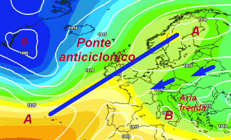 Si nota un ponte di alta pressione che dal Vicino Atlantico si estenderà fino al cuore dell’Europa nord-orientale. Con una situazione del genere, l’arrivo di perturbazioni da ovest risulterà pressochè impossibile. Ci sarà invece spazio per impulsi freschi in arrivo da est che manterranno un tempo nel complesso instabile e fresco, con piogge però mal distribuite.