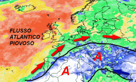 La traccia dell’alta pressione è ben visibile dalla zona con precipitazioni quasi nulle che riguarderà proprio il Mediterraneo e l’Italia. Il flusso atlantico piovoso, ma mite, agirà invece molto bene sull’Europa centro-settentrionale, dove il tempo sarà spesso perturbato, ma non freddo.