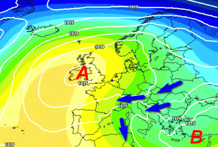 Come abbiamo già anticipato in altra sede, l’alta pressione atlantica più che spanciare verso levante e riportare il tempo mite e scialbo come spesso è successo in altri anni, dovrebbe restare sul posto, anzi, con una tendenza latente a puntare verso nord, in direzione del Regno Unito. Così facendo, lascerà scoperto il bordo orientale dove l’aria fredda potrà scorrere liberamente da nord-est, interessando l’Italia, in modo particolare il versante adriatico e il meridione, anche se il freddo si sentirà un po’ ovunque.