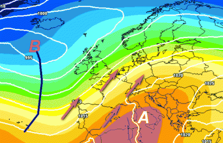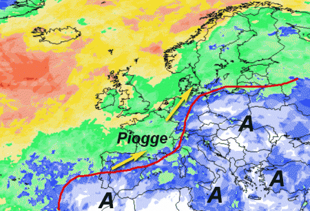 Pioverà ancora a più non posso su molte aree dell’Europa occidentale. Da noi invece andrà in scena sempre il solito scenario, con l’alta pressione radicata alle basse latitudini del Mediterraneo che impedirà ai fronti di entrare franchi sul Bel Paese.